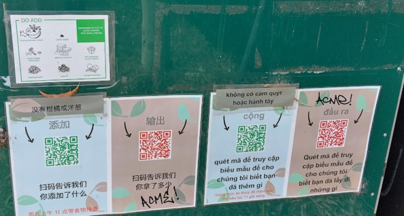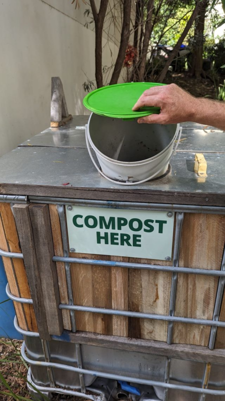 - Use colour coded “hungry” and “full” (or similar wording) so people know where to add their food scraps